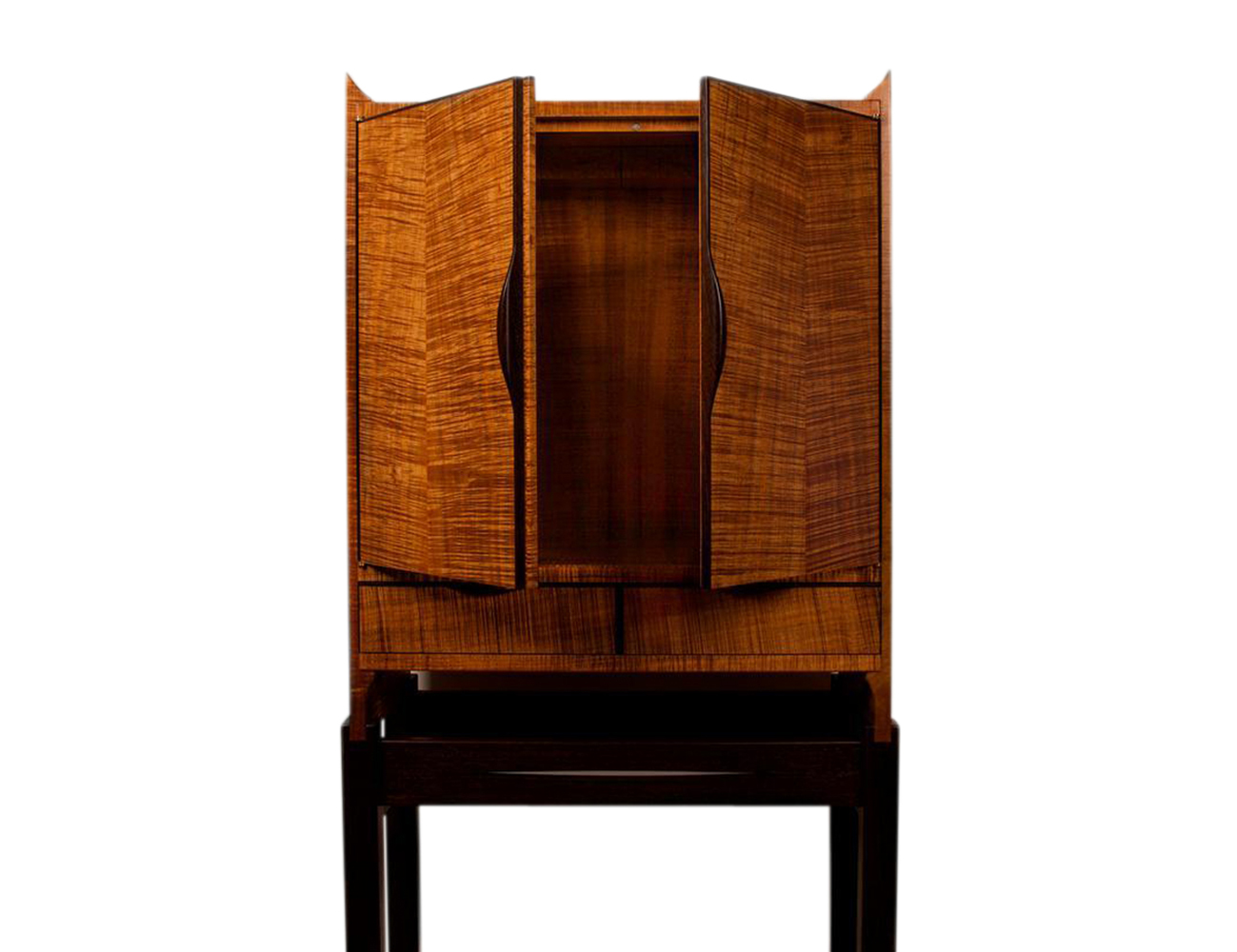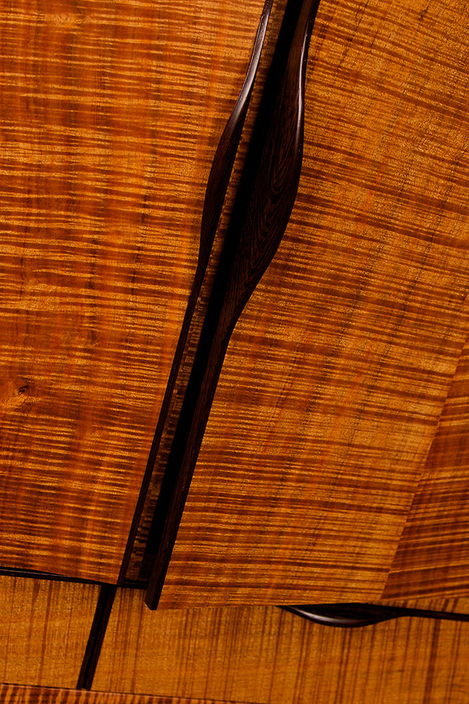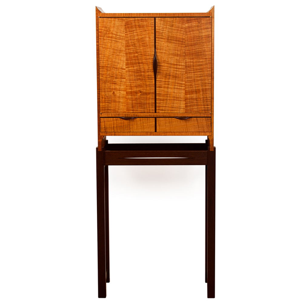 A streamlined elegant solid timber cabinet inspired by the master furniture maker “James Krenov”. This wooden cabinet showcases the beautiful figured grains that can be found in Tasmanian Blackwood and the rich dark tones of the solid Wenge cabinet base.