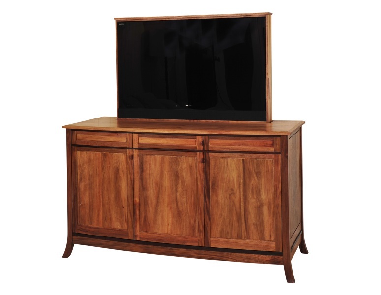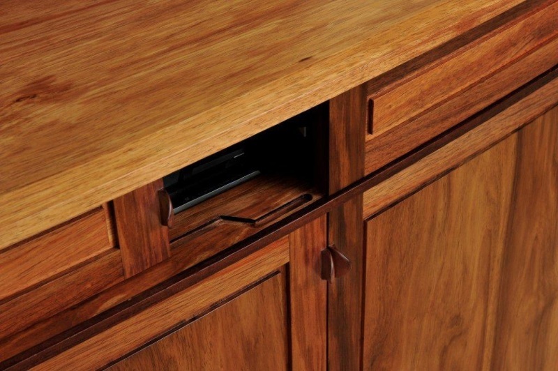 An elegant Tasmanian Blackwood TV Cabinet incorporating an electronic, remote controlled TV lift, soft closing doors and hand shaped door handles.