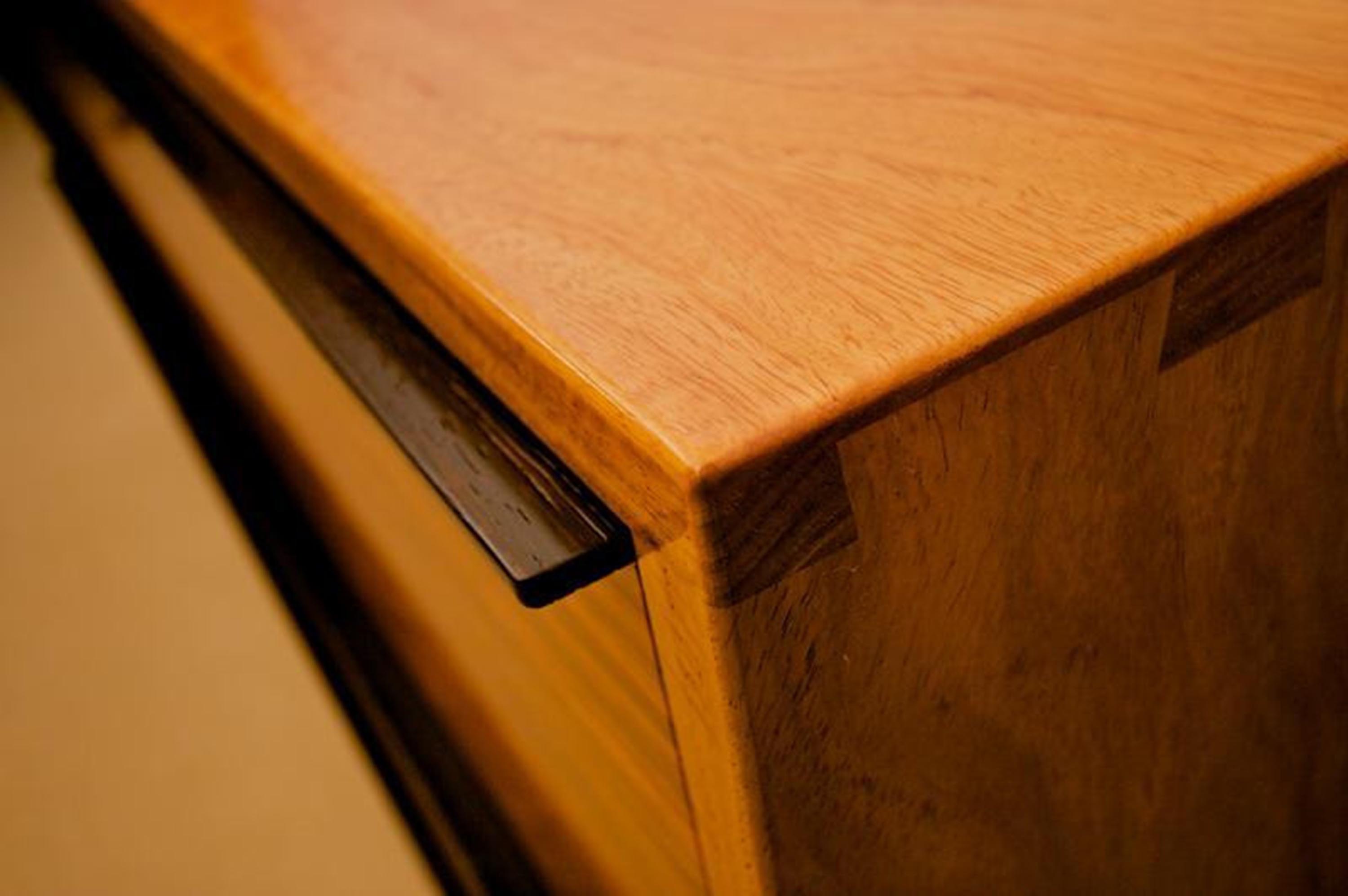An elegant minimalist credenza handmade from New Guinea Rosewood and Wenge.